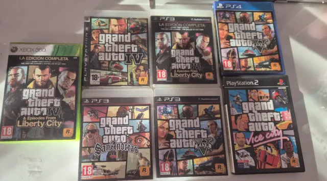 Collezione di sette videogiochi della saga Grand Theft Auto per diverse console. - Grand Theft Auto IV: Edizione Completa per Xbox 360. - Grand Theft Auto IV: Edizione Completa per PS3. - Grand Theft Auto V per PS4. - Grand Theft Auto: San Andreas per PS3. - Grand Theft Auto: Vice City per PS2. ACLARÓ Poiché mi trovo nelle Canarie, non effettuo spedizioni tramite Wallapop. Le spedizioni sono gestite tramite Correos, con possibilità di scegliere tra spedizione ordinaria o certificata. Il pagamento viene effettuato tramite bonifico bancario o Bizum.