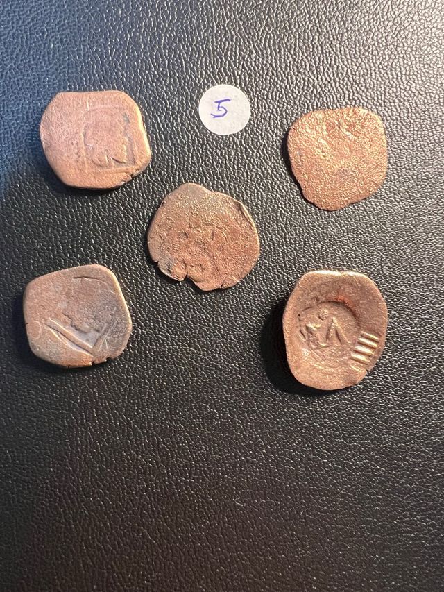 Set di cinque monete antiche. - Monete in rame. - Design vari.