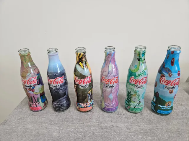 Dettagli del prodottoSet di sei bottiglie di Coca Cola Light, edizione limitata composta da 6 modelli progettati da rinomati artisti plastici argentini con il motto "Ispirazioni argentine". NON VENDUTE SEPARATAMENTE. - Design artistici unici su ogni bottiglia. - Collezione di bottiglie di vetro. - Ideale per collezionisti. La descrizione è stata tradotta automaticamente.