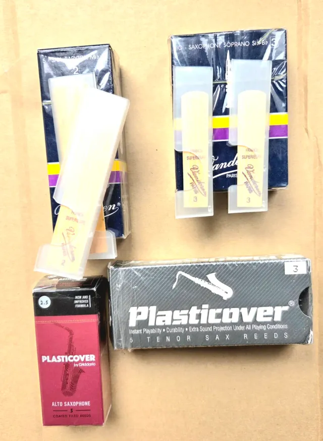 Dettagli del prodottoSet di canne per sassofoni. Tutte nuove, in liquidazione per chiusura negozio. - 2 canne Vandoren Soprano Sib Bb, durezza 3. 2 canne Vandoren Baritono, durezza 2. - 1 canna Plasticover Alto, durezza 2.5. - 1 canna Plasticover Tenor Sax, durezza 3. La descrizione è stata tradotta automaticamente.