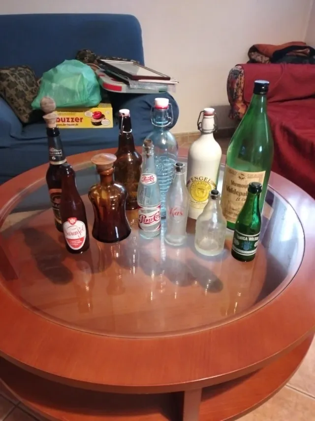 Dettagli del prodottoSet di bottiglie antiche di varie forme e colori, ideali per collezionisti o decorazione. - Bottiglie di vetro in diversi toni. - Design vari e unici. - Alcune con tappi originali. La descrizione è stata tradotta automaticamente.