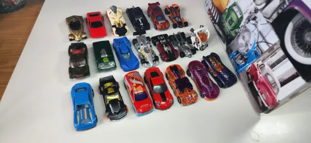 Lotto di 20 macchinine Hot Wheels. - Varietà di modelli e colori. - Design iconici del marchio.
