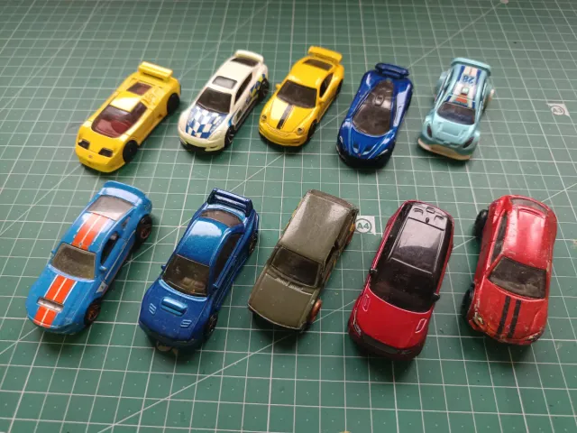 Collezione di 10 auto giocattolo Hot Wheels. - Vari modelli e colori. Ideale per collezionisti o per giocare.