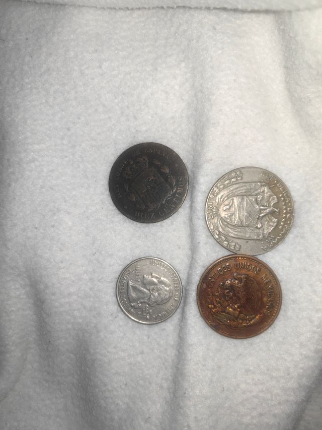 Dettagli del prodottoSet di quattro monete antiche di diverse origini ed epoche. 50 euro per tutte e 4. Nessuna spedizione, consegna a Las Pajanosas, Guillena senza costi aggiuntivi o Plaza de Armas, Siviglia con 5 euro extra. - Una moneta d'argento con scudo. - Una moneta di bronzo con scudo e legenda. - Una moneta di bronzo con aquila. - Una moneta degli Stati Uniti d'America. La descrizione è stata tradotta automaticamente.
