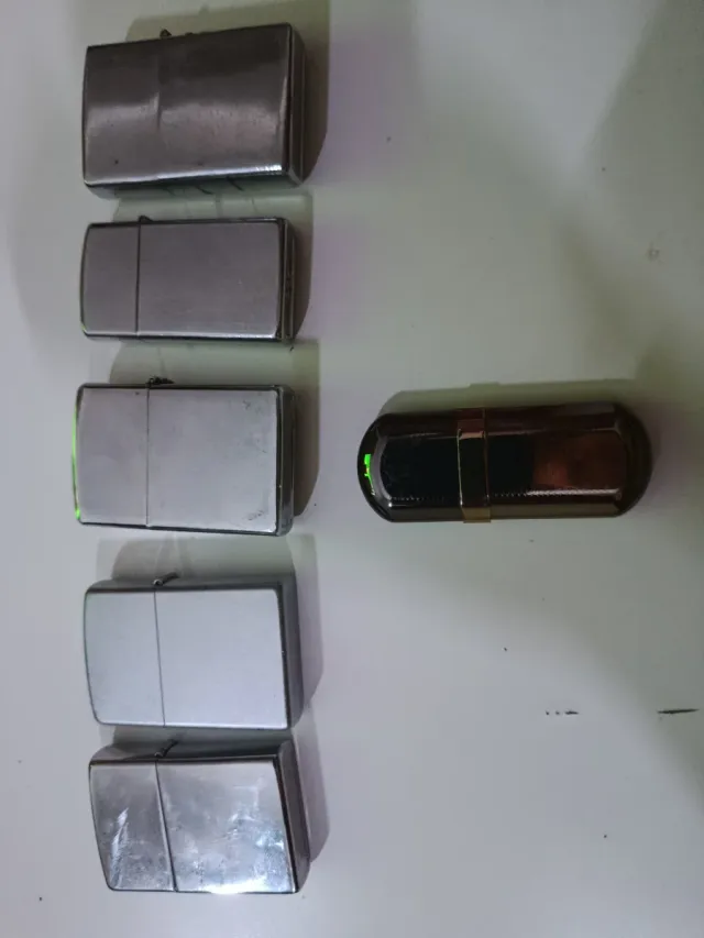 - 3 sono accendini in metallo Zippo La descrizione è stata tradotta automaticamente.