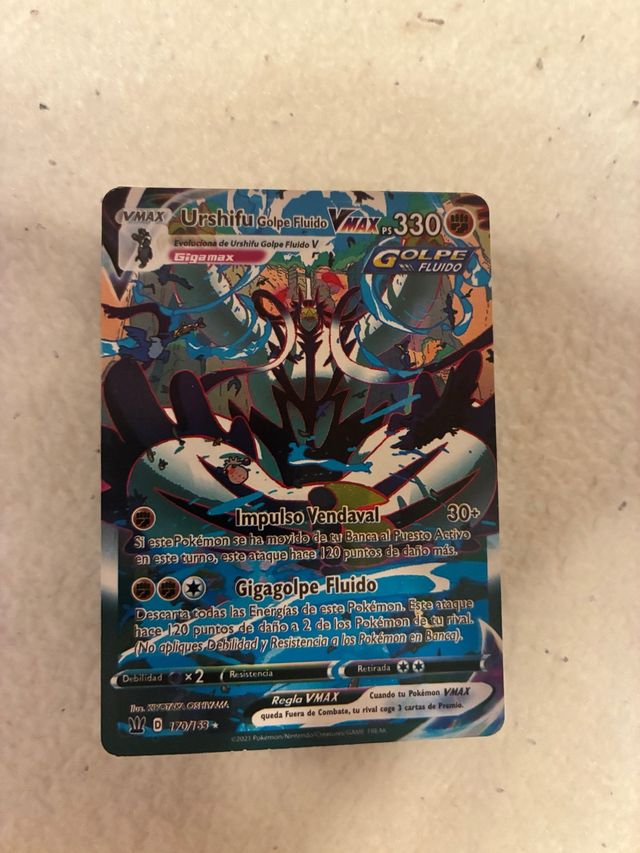 Dettagli del prodottoLottazione di varie carte Pokémon. Non le vendo a 1€. Posso venderle separatamente e sono aperto a negoziare poiché non capisco molto dell'argomento. Include: 1. Urshifu Colpo Fluido VMAX (x2) 2. Urshifu Colpo Brusco VMAX (x2) 3. Magikarp & Wailord GX 4. Energia 5. Urshifu Colpo Fluido V 6. Mimikyu V 7. Urshifu Colpo Brusco V 8. Inteleon VMAX 9. Corviknight VMAX 10. Coalossal V 11. Talonflame V 12. Kriketune V 13. Grimmsnarl VMAX 14. Urshifu Colpo Fluido VMAX 15. Salamence V 16. Scizor VMAX 17. Butterfree VMAX 18. Vikavolt V 19. Rillaboom VMAX Centikstorch V e VMAX, Victini VMAX, Tauros GX La descrizione è stata tradotta automaticamente.
