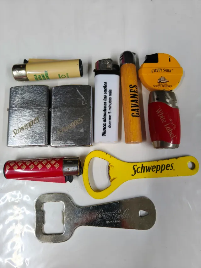 Dettagli del prodottoSet di accendini e apribottiglie in stile vintage. Non caricati. Ideale per decorare o collezionare. Spedizione di tutto ciò che si vede in foto. La descrizione è stata tradotta automaticamente.