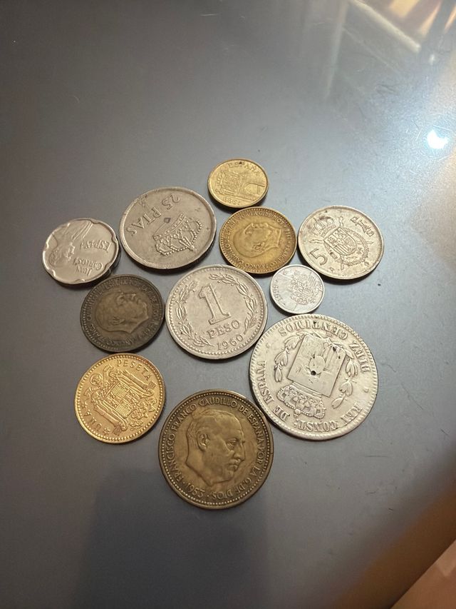 Dettagli del prodottoRaccolta di varie monete antiche, incluse peseta spagnole e altre. - Moneta da 25 peseta. - Moneta da 1 peso, anno 1960. - Moneta da 5 peseta. - Moneta da 10 centesimi. - Moneta commemorativa di Francisco Franco, anno 1955. - Moneta da 1 peseta. - Moneta d'oro con stemma. Sono disponibili molte altre monete, consultaci. Il prezzo varia in base alla moneta desiderata. La descrizione è stata tradotta automaticamente.