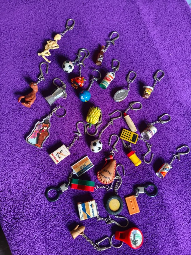 Dettagli del prodottoCollezione di portachiavi vintage con vari design. Include figure, oggetti e motivi diversi. Ideale per collezionisti o per dare un tocco retrò. Ogni portachiavi ha un design unico. Si accettano offerte La descrizione è stata tradotta automaticamente.