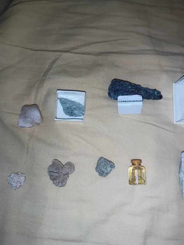 Dettagli del prodottoCollezione di minerali vari. Include diversi tipi di rocce e cristalli. Presentazione in scatola e barattolo. Aragonite, azabache, escolecita, verdita dal Sudafrica, carborundum. La descrizione è stata tradotta automaticamente.