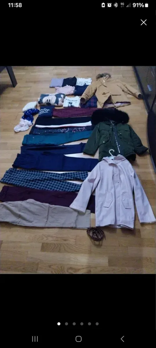 Dettagli del prodottoSet di abbigliamento per bambina in varie taglie. Include capi di diversi stili e colori. Taglie 10 a 14 - Varietà di pantaloni. - Varietà di magliette. - Giacche. - Cappotto con cappuccio. La descrizione è stata tradotta automaticamente.