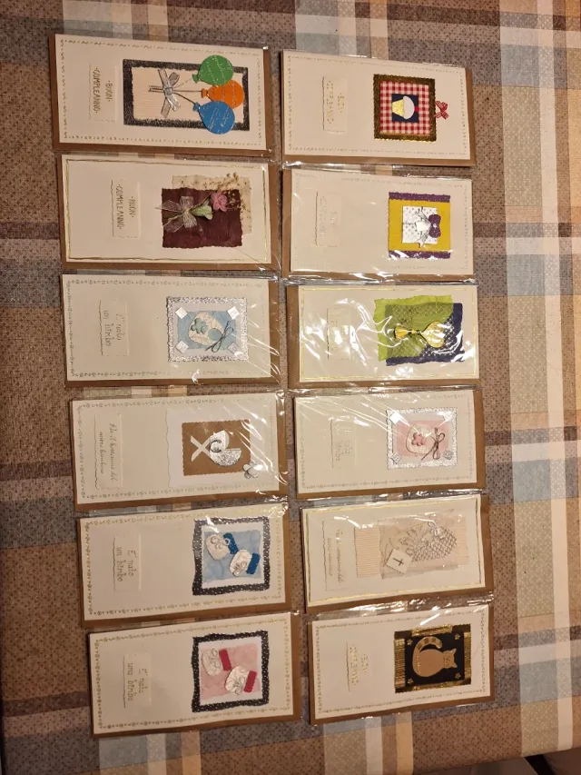 Dettagli del prodottoLotto di 12biglietti nuovi con busta per vari eventi, perfetti per ogni occasione. Ogni biglietto è un pezzo unico.