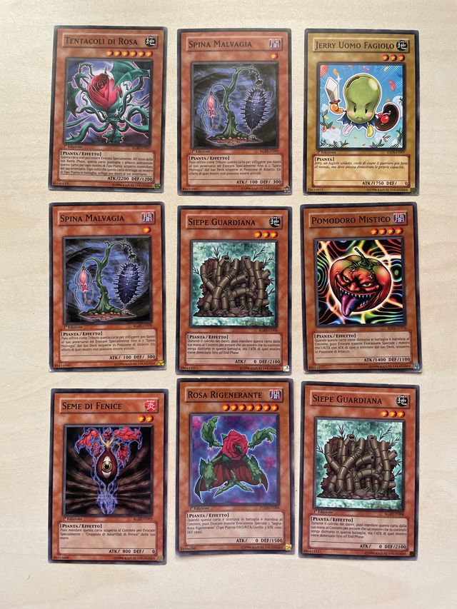 Dettagli del prodottoVendo lotto di 9 carte Yu-Gi-Oh! con tema piante ed effetto.
