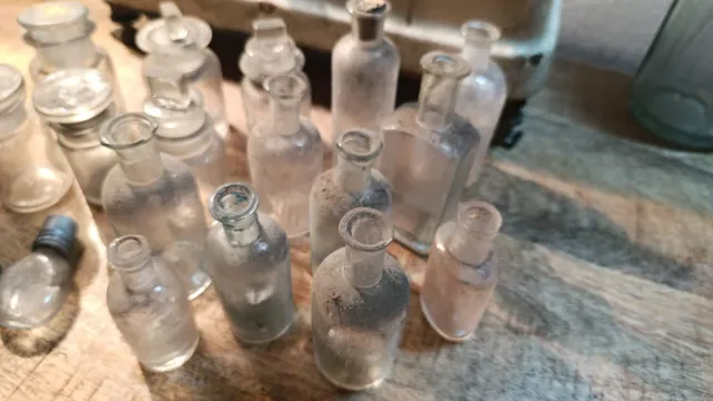 Dettagli del prodottoLotto composto da quindici bottiglie farmaceutiche antiche, ideali per collezionisti o per uso decorativo.