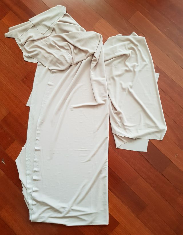 set due scampoli di jersey color beige, uno cm 210 x 55, l'altro cm 37 x 69