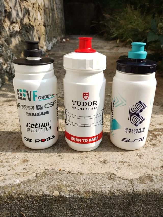 Lotto 3 borracce/bidon ciclismo VF, Tudor, Bahrain