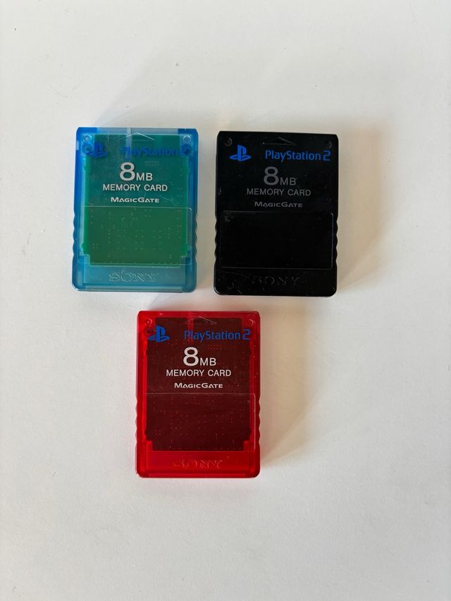 Dettagli del prodottoVendo tre memory card originali Sony per PlayStation 2, tutte testate e perfettamente funzionanti: