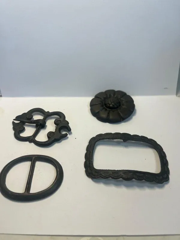 Dettagli del prodottoLotto composto da quattro fibbie antiche, perfette per collezionisti o per dare un tocco vintage ai tuoi abiti.