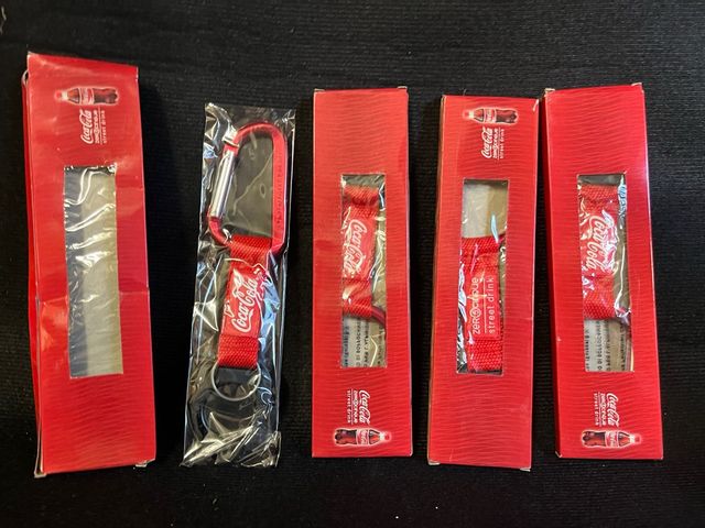 Lotto composto da 4 portachiavi a tema Coca-Cola. - Design con logo Coca-Cola. - Colore rosso. - presentano la scritta Zero e street drink.