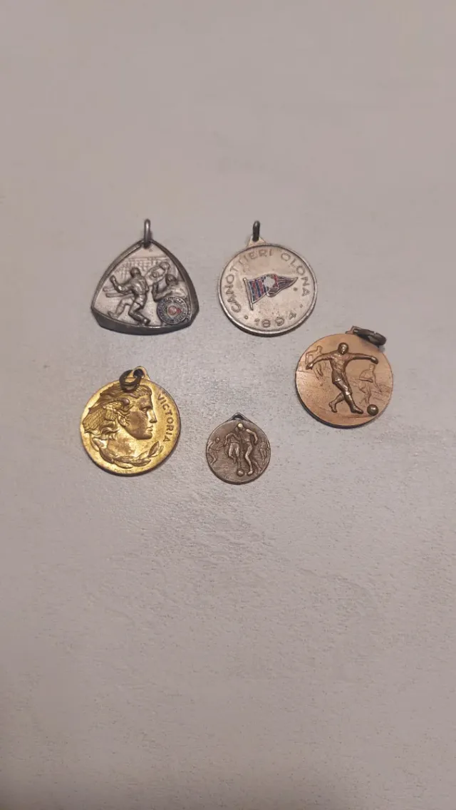 Lotto composto da 5 medaglie sportive vintage, ideali per collezionisti o appassionati di sport.