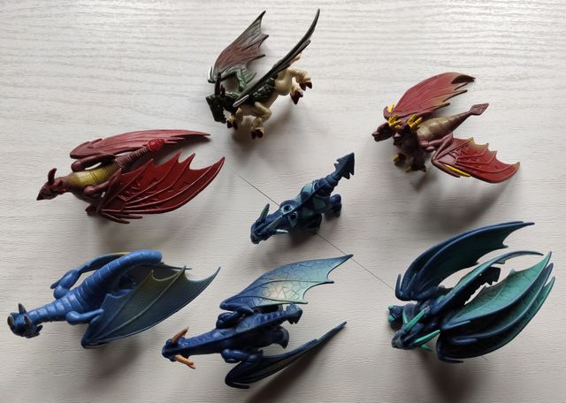 Dettagli del prodottoLotto di 7 draghi dragon Action Figure Dragons di Ubisoft, della serie Battle of Giants: Dragons; draghi da combattimento tra giganti, drago o dragone di colore azzurro, rosso e verde, personaggi 3D giocattolo simil gormiti giochi.
