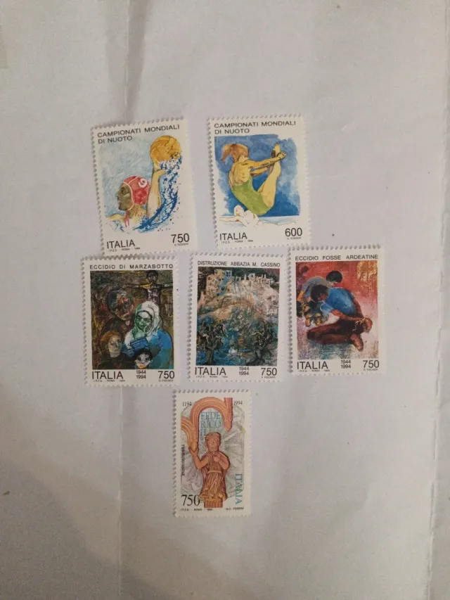 Dettagli del prodottoLotto di 6 francobolli italiani emessi nel 1994.