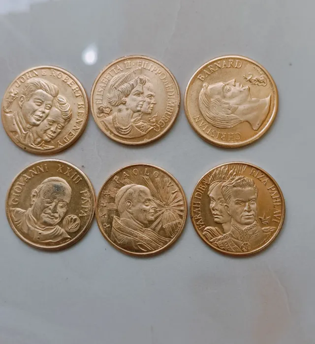 Dettagli del prodottoLotto di 6 medaglie commemorative con effigi di personaggi storici.
