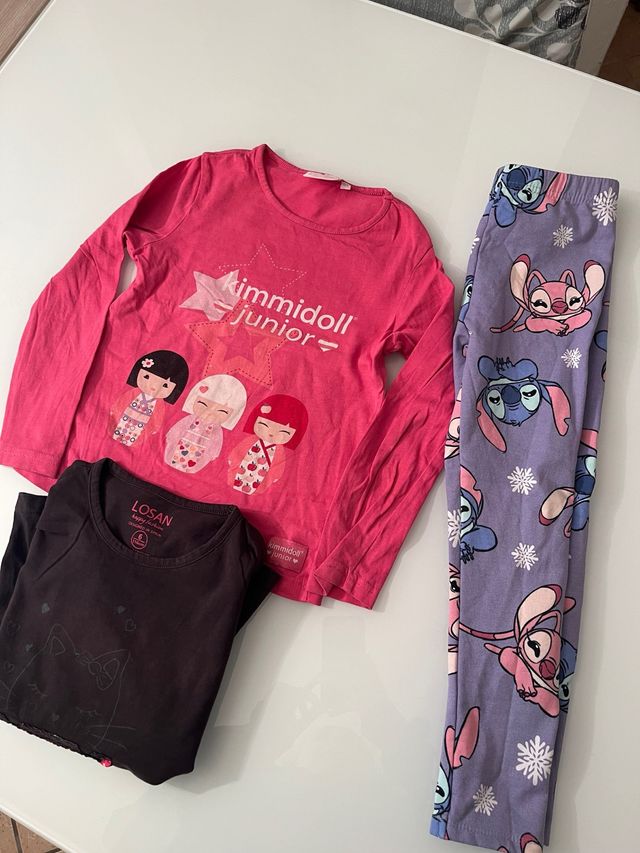 Dettagli del prodottoLotto composto da due maglie a maniche lunghe e un paio di leggings per bambina.