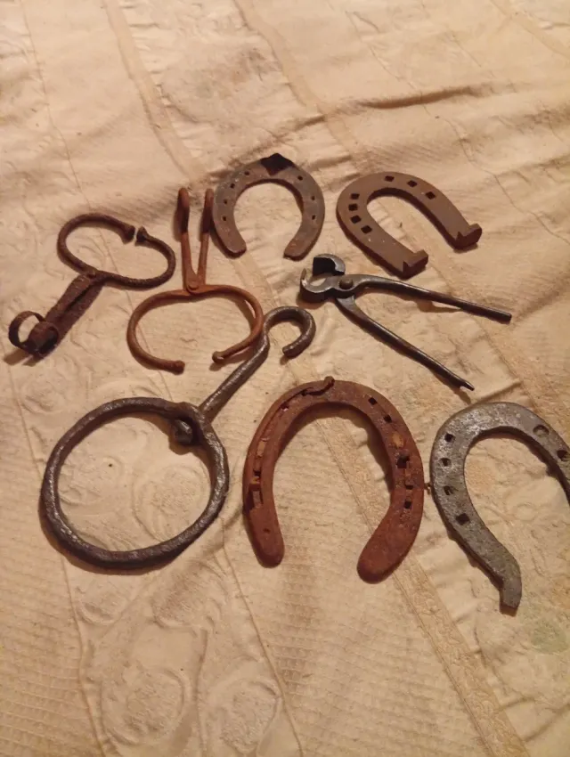 Dettagli del prodottoLotto di attrezzi antichi in metallo, ideali per la cura degli animali.