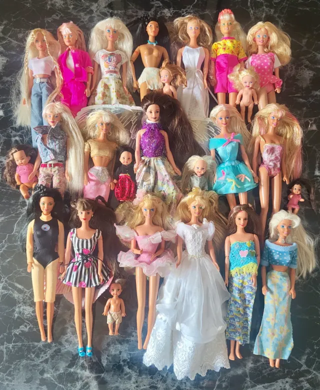 Dettagli del prodottoLotto di bambole Barbie vintage anni 80/90, un'occasione unica per collezionisti.