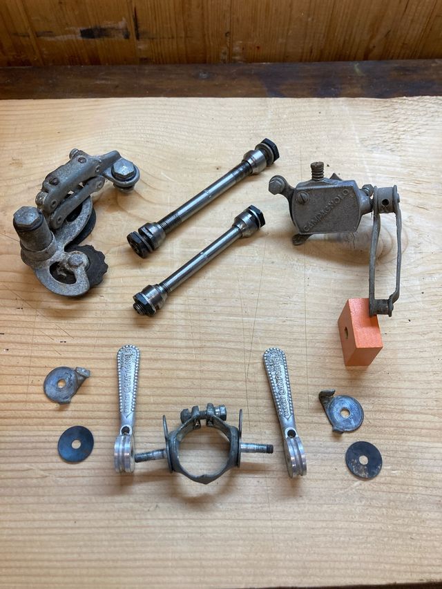 Dettagli del prodottoLotto di componenti Campagnolo Valentino, ideali per pezzi di ricambio o per chi desidera restaurare una bicicletta d'epoca.
