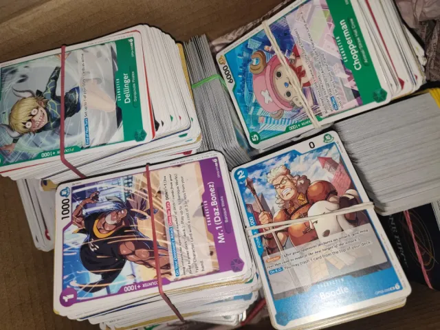Lotto di carte del gioco One Piece Card Game. 1 kg misto da op01 a op13 , leader comuni non comuni ( max 4 carte uguali )