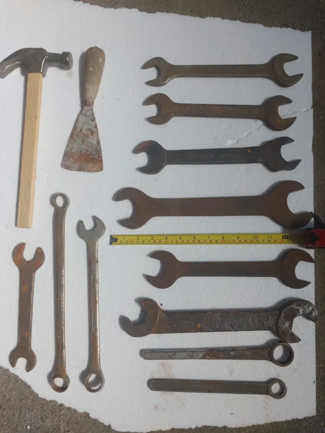 Dettagli del prodottoLotto di chiavi da officina in stile vintage. Ideali per collezionisti o per chi cerca attrezzi robusti.