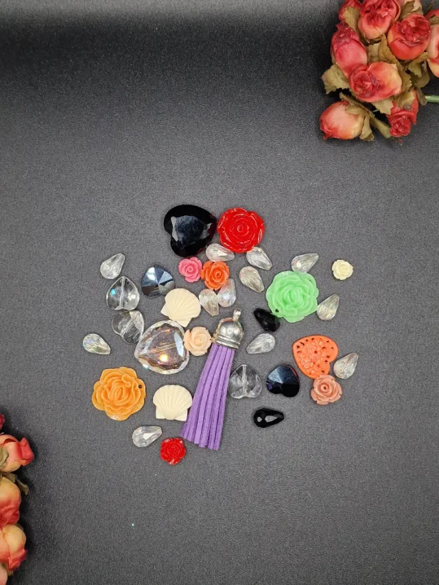 Dettagli del prodottoVendo lotto misto di materiale per creare composto da roselline, piccoli ciondoli, perline a forma di cuore e a goccia. Nuovi, mai usati, rimanenza di materiale che usavo per creare bijoux e gioielli.