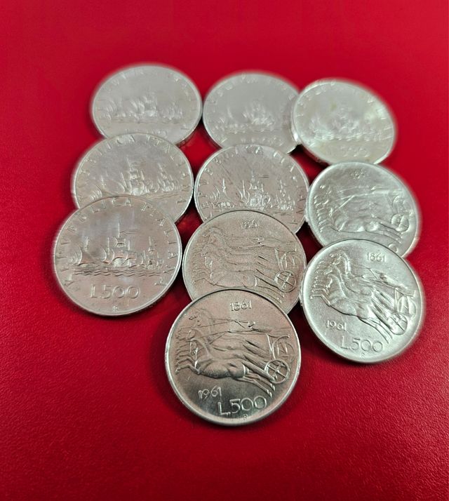 Repubblica Italiana lotto di 10 monete in argento composto da 6 Monete da 500 Lire Caravelle e 4 monete da 500 lire Centenario da collezione