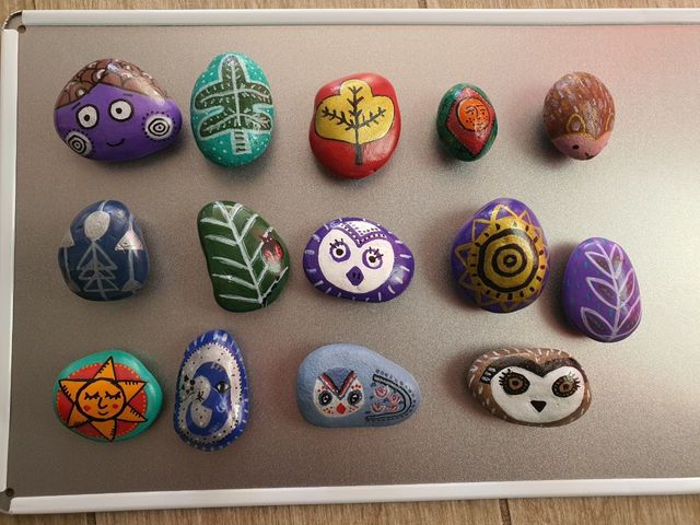 Dettagli del prodottoLotto di 14 calamite dipinte a mano. Realizzate su sassi di fiume e quindi le forme non sono regolari. Non sono state modifiche con paste per dare delle forme particolari. Essendo realizzate a mano ci possono essere delle piccole imperfezioni che però le rendono uniche.