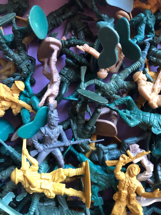 -100 soldatini vintage di plastica gommata,molto dettagliati di varie fazioni di cui: