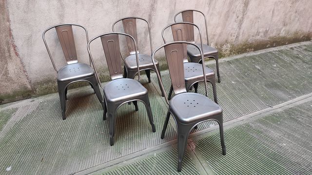 Dettagli del prodottoLotto di 6 sedie in ferro repliche del noto marchio francese Tolix Misure del prodotto