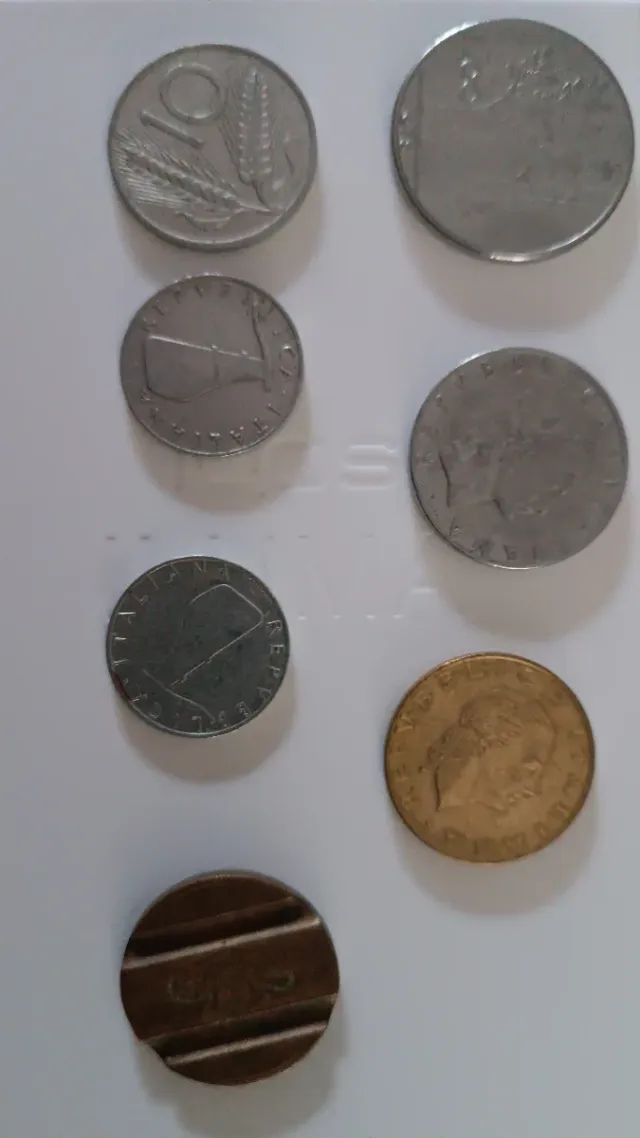 Lotto composto da 7 monete di diverso tipo. - Monete in metallo. - Diverse dimensioni e design.