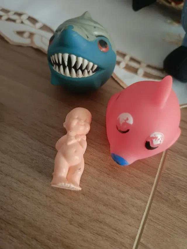 Dettagli del prodottoLotto di giocattoli d'acqua composto da uno squalo, un maialino e una bambola.