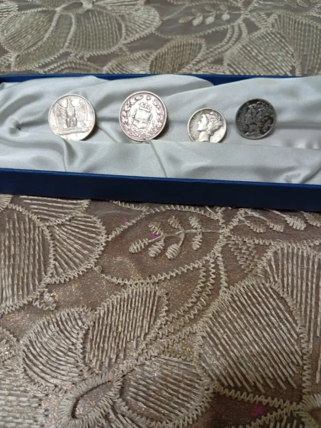 Lotto di n.4 monete in argento, perfette per collezionisti. - Monete con disegni storici. - Materiale: argento.