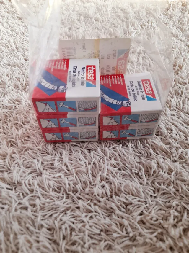 Lotto di cinque nastri adesivi telati extra forti, nuovi in confezione