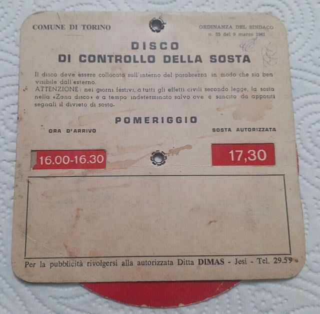 Lotto Dischi della sosta comune di Torino ordinanza n.35 del 9 marzo 1961