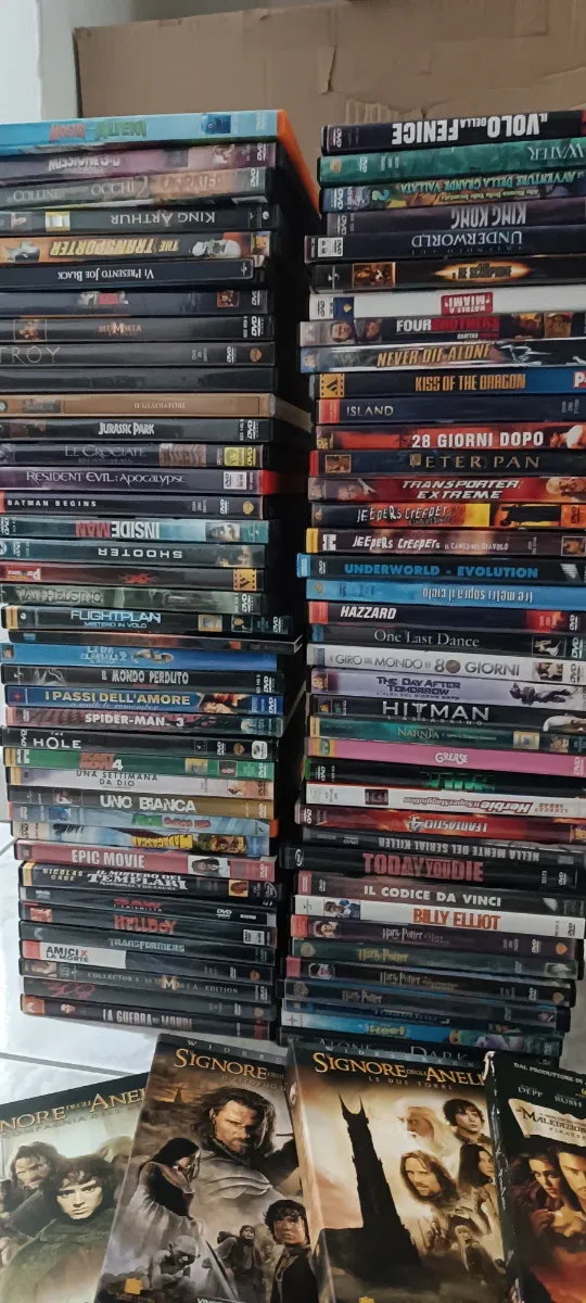 Dettagli del prodottoVendo lotto di DVD con film di vario genere. Alcuni titoli visibili sono: più di 80 film, vendo a blocco.€70,00