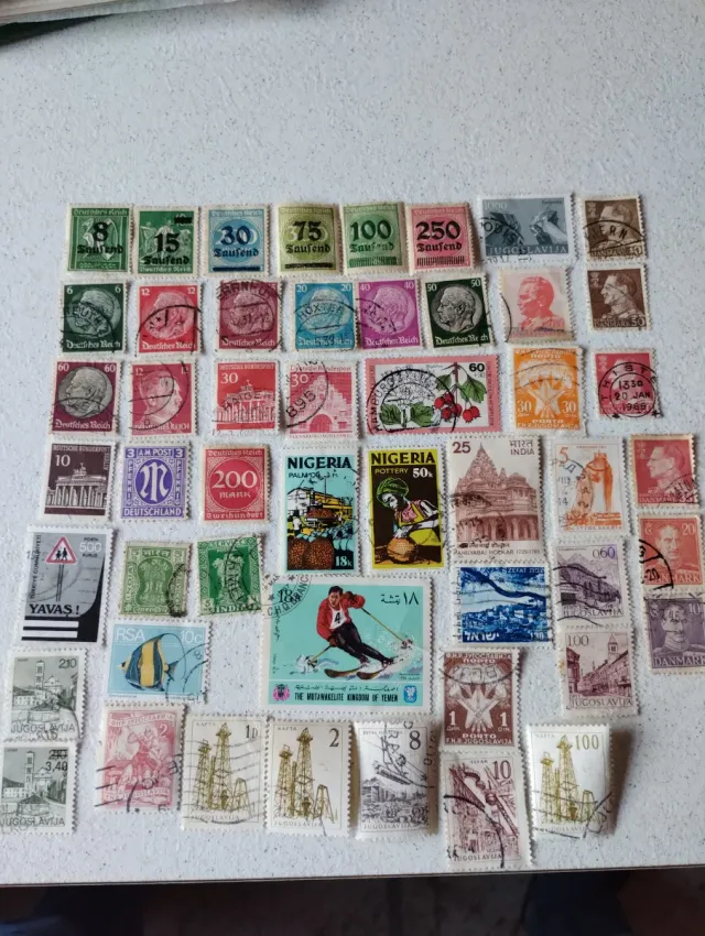 - Presenti francobolli da Germania, Nigeria, India, Yemen e Jugoslavia.