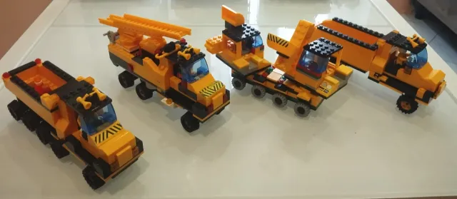 Set di veicoli da costruzione Lego. - Camion con cassone ribaltabile - Escavatore - Autocarro con gru - Veicolo con piattaforma aerea