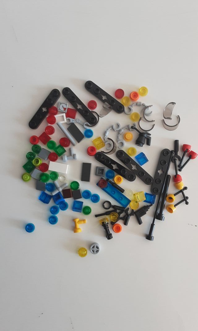Lotto Lego formato da minuterie in vari colori, antenne, visiere, manette e altri accessori come da foto