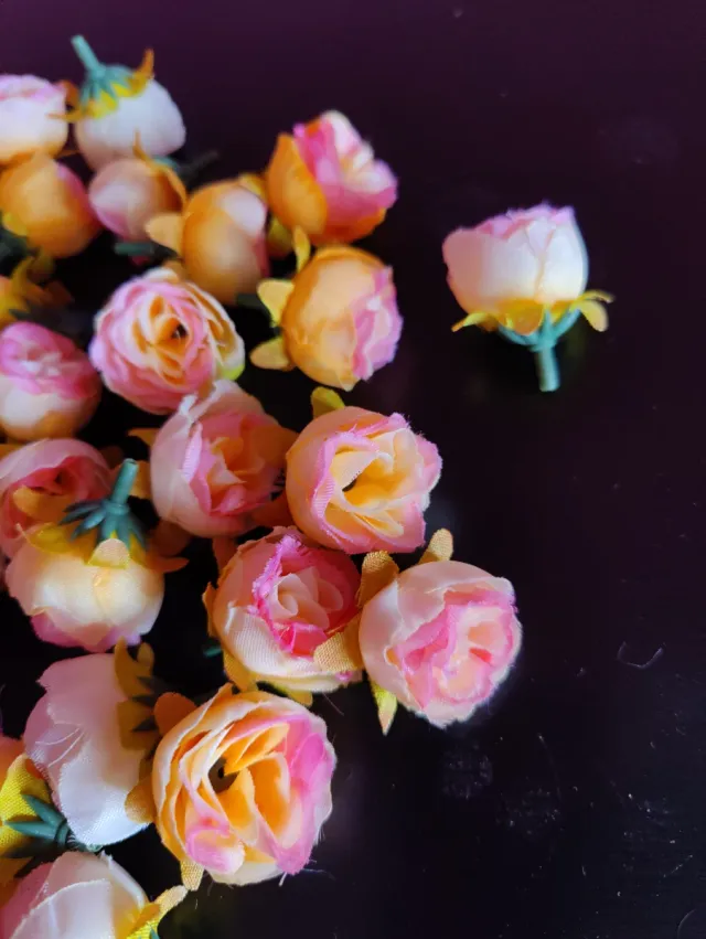 Dettagli del prodottoLotto di 50 roselline artificiali, perfette per decorazioni e creazioni fai-da-te.