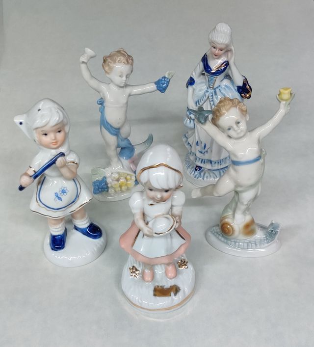 Dettagli del prodotto-Vendo un lotto completo di 5 bellissime statuette vintage in porcellana dipinte a mano.