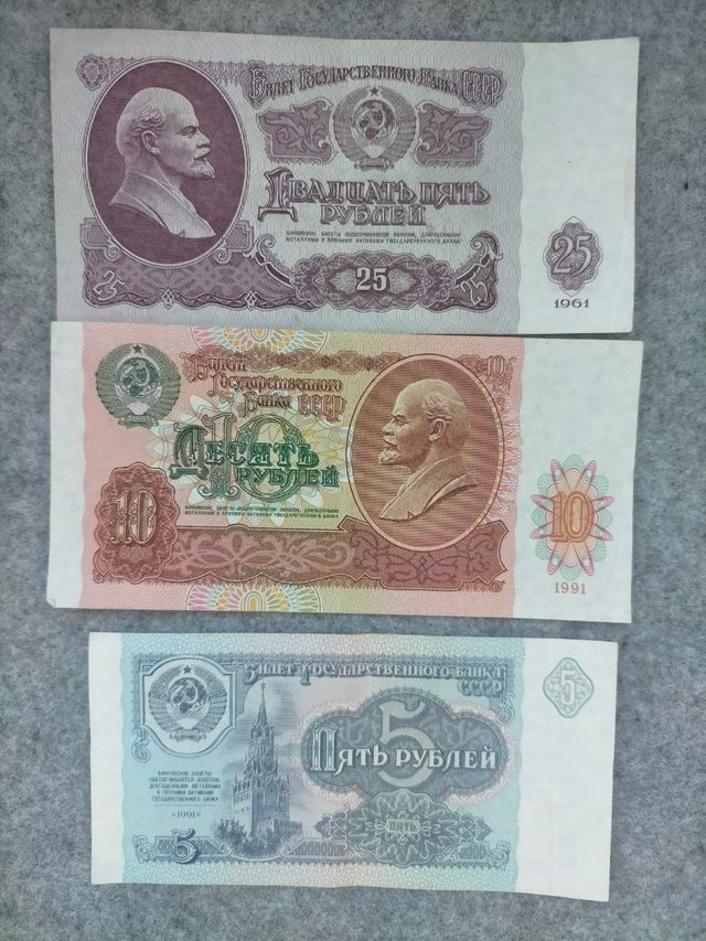 Ribasso da 49€ Banconota 5 Rubli 1961 Cremlino Banconota 25 Rubli 1961Russia Lenin Banconota 10 Rubli 1991 Russia Lenin